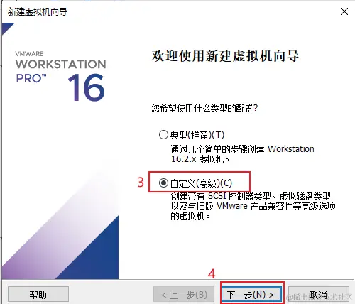 - 点击2处的新建虚拟机,会弹出新建虚拟机向导弹框。