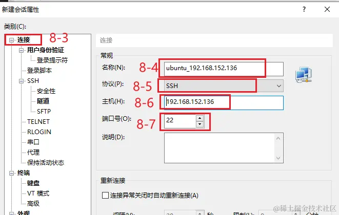 - 在8-6处填入ubuntu的ip地址,比如我填写的是192.168.152.136。