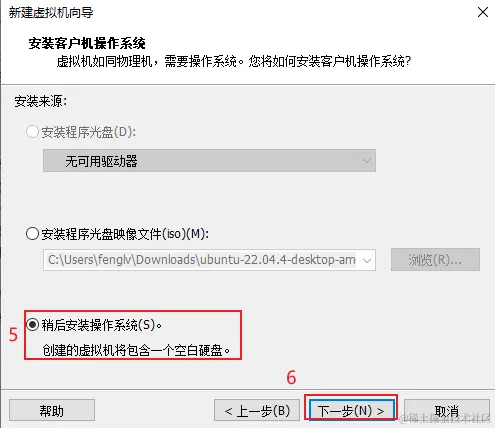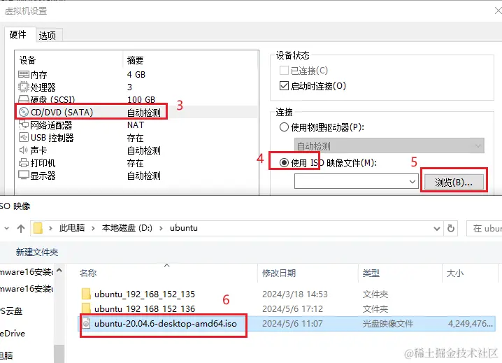 - 点击5处的浏览,打开ubuntu镜像所在的文件夹。
