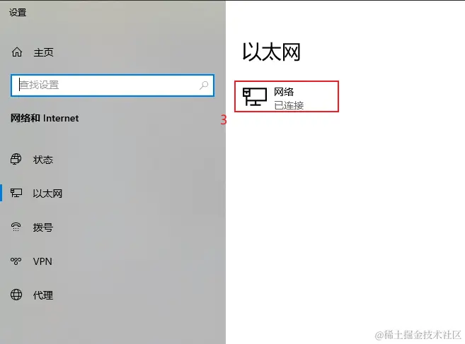 3. 点击3处的网络,在界面上就能看到本地实体机的DNS服务器了。