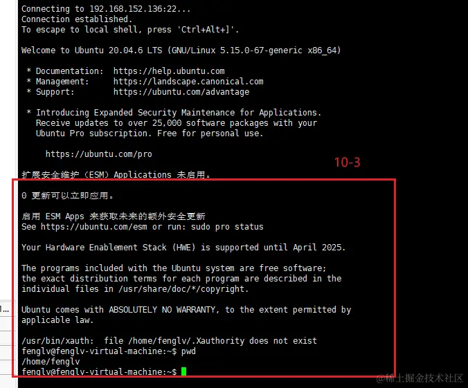 - 此时就可以用xshell方便的操作ubuntu了,如10-3处所示。