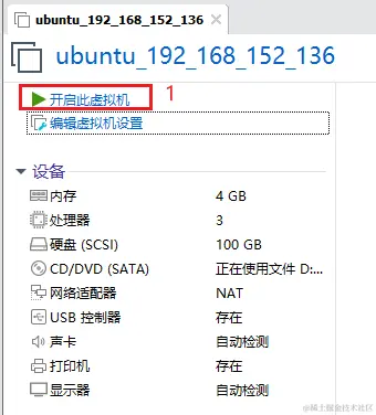 - 点击完成之后,会在VMware的左面看到名字为ubuntu_192_168_152_136的标签,如图中33处所示: