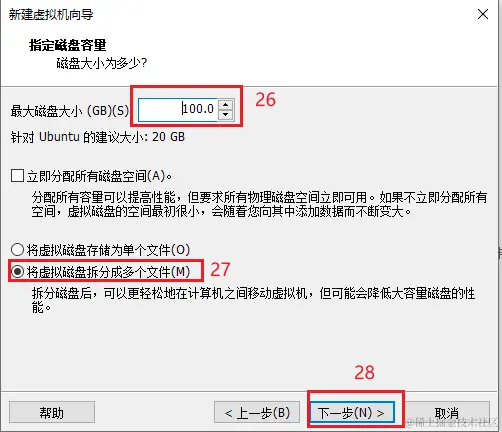 - 勾选27处的将虚拟磁盘拆分成多个文件。