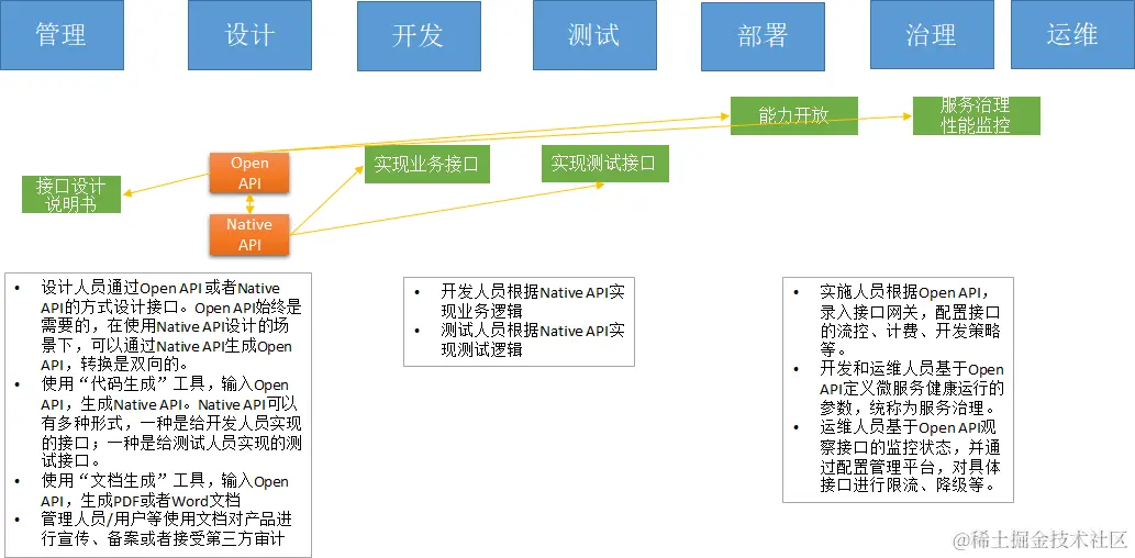 契约优先开发可以涵盖设计、开发、测试、部署、运维等软件开发的全流程,通过契约可以实现不同环节的并行工作,从而提高开发效率。 一个简单的契约开发过程如下: