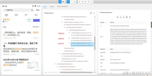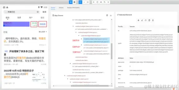 - 如果定位到的元素为单个时,可直接使用,如果定位到的兄弟节点有多个,定位到某一个兄弟节点同样需要增加过滤条件。例如,需要定位到兄弟节点中,resource-id 为 com.xueqiu.android:id/stock_layout 的元素。
