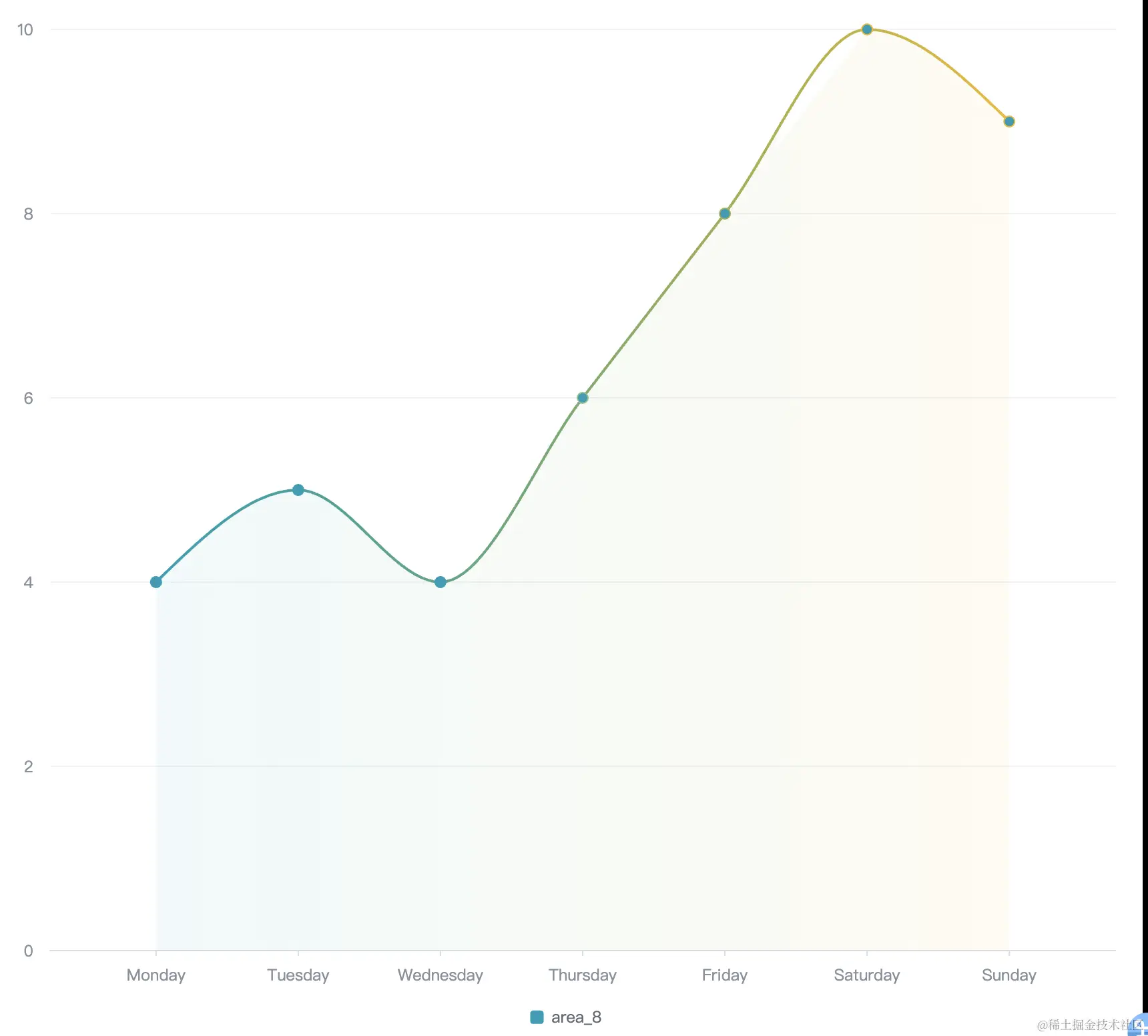 - 如果你不希望图例颜色跟随面积图的渐变色,可以通过配置