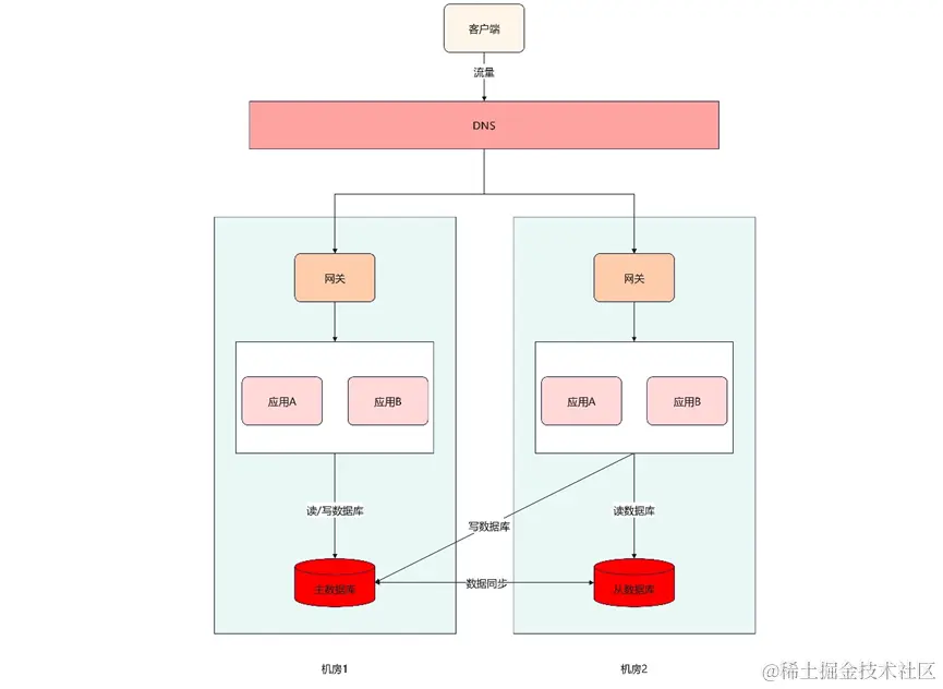 最早的系统架构一般为单机架构,当数据库出现故障时,可能会导致业务长时间中断。为了解决这一问题,数据库发展为由主库和从库组成,主库负责读和写操作,从库只提供读操作,主数据库的数据会实时同步至从数据库保持数据的一致性和完整性。当主库出现问题时,从库切换为主库继续工作。不过,这些服务都部署在同一机房甚至是同一个机柜,当机房出现故障后,系统仍然不能正常对外提供服务。