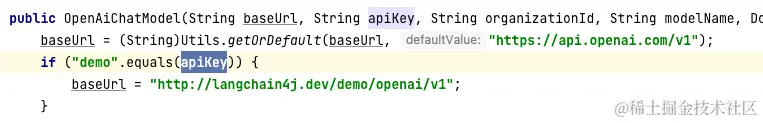 这样,我们使用LangChain4j第一次成功的和OpenAi的GPT模型进行了对话,正常来说,调用OpenAi的API接口需要在OpenAi的官网去申请ApiKey才能调用成功,而我这里传入的ApiKey为"demo"却也能调通,查看源码得知这是因为demo是openai为我们提供的测试的apiKey