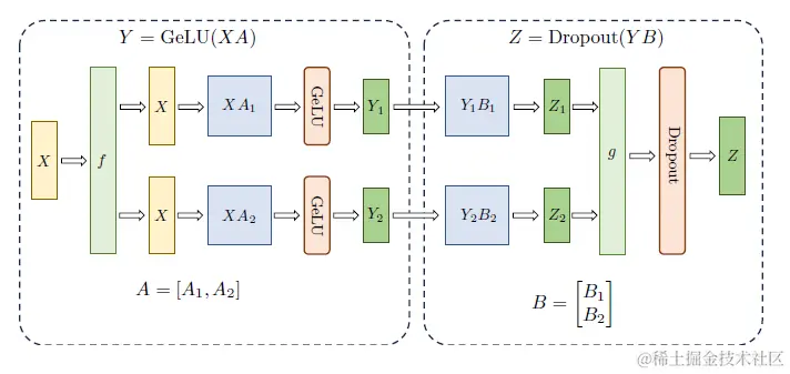 图12 FNN 结构张量并行示意图