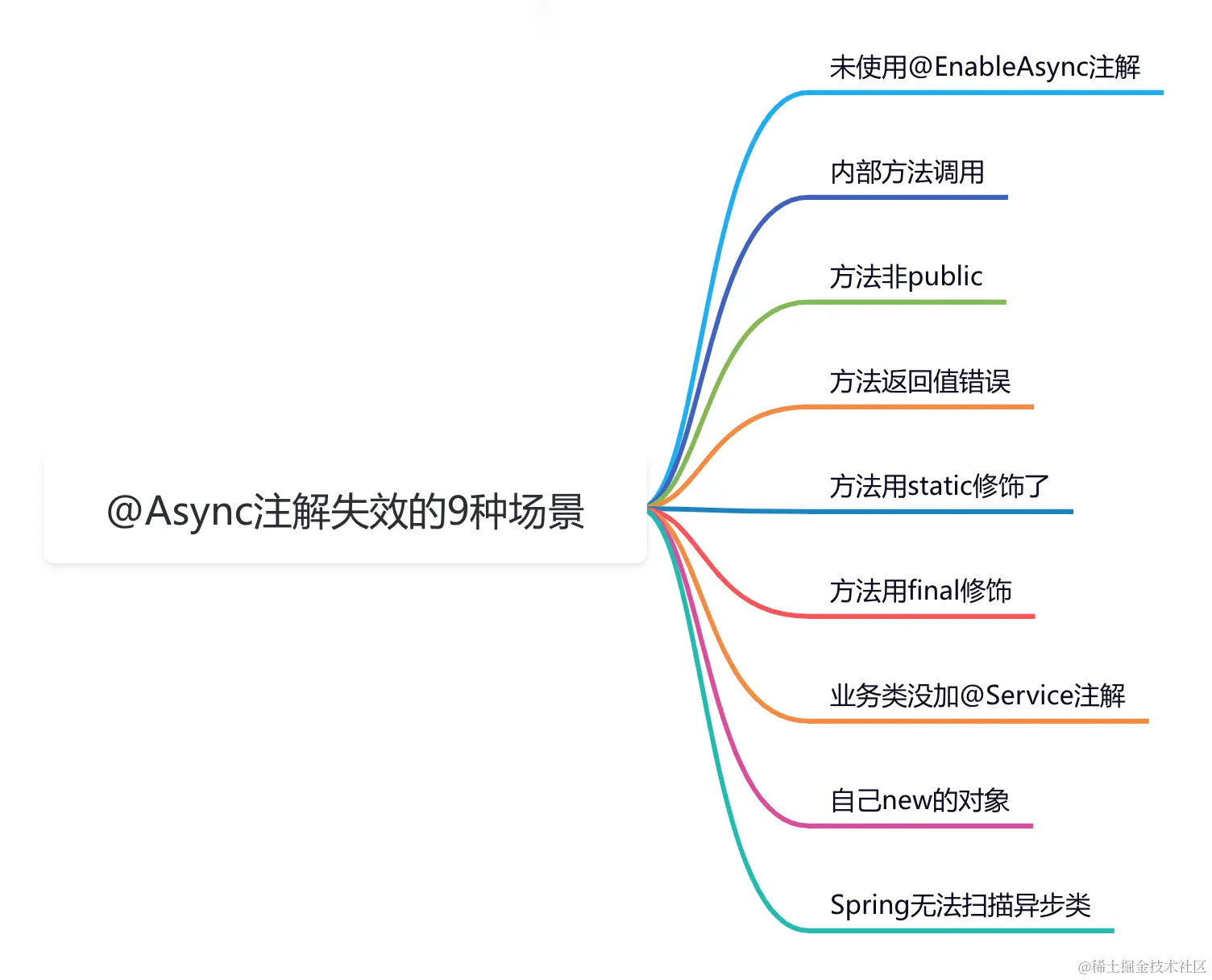 这个问题还是比较有意思的,今天这篇文章总结了@Async注解失效的9种场景,希望对你会有所帮助。
