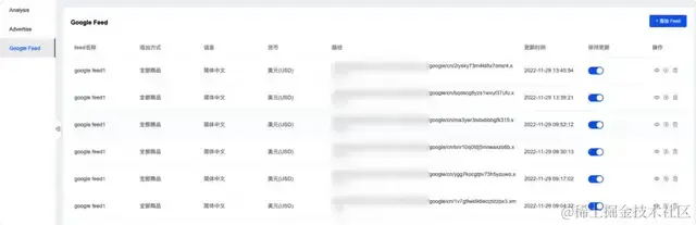 点击菜单Google Feed 页面点击添加Feed按钮