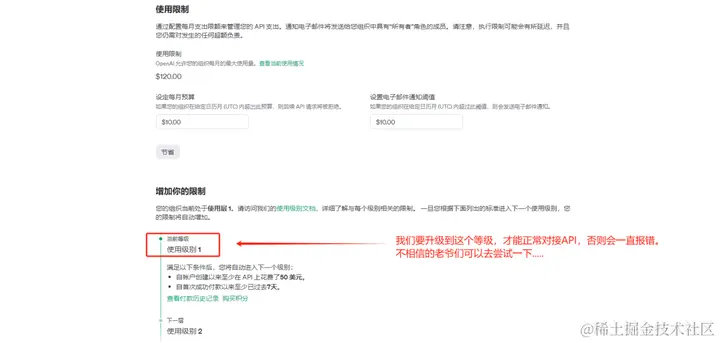 五、第五步,升级Open AI使用级别