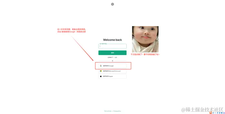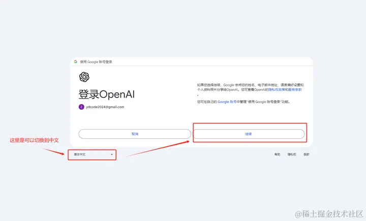 3、关键的时刻到了,使用谷歌账号登录!省去一切繁琐步骤。