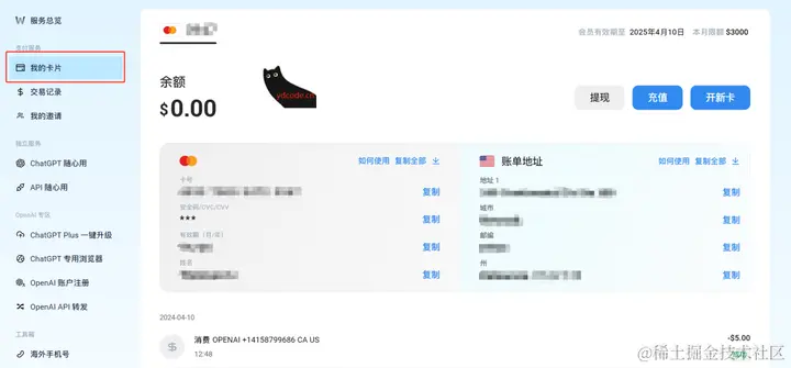 4、此时你的卡片中余额是0,Wild Card 最低起步是10美元~ 所以各位老爷都懂的~ 含泪付吧....舍不得余额套不着API……