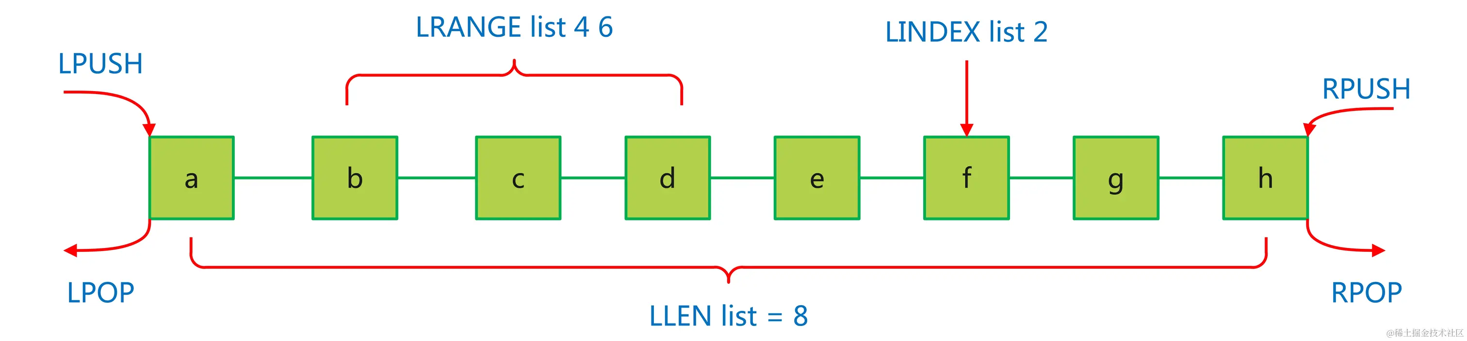 List 的 Redis 中的 5 种主要数据结构之一,它是一种序列集合,可以存储一个有序的字符串列表,顺序是插入的顺序。我们可以使用相关命令添加一个字符串元素到 List 的头部(左边)或者尾部。
