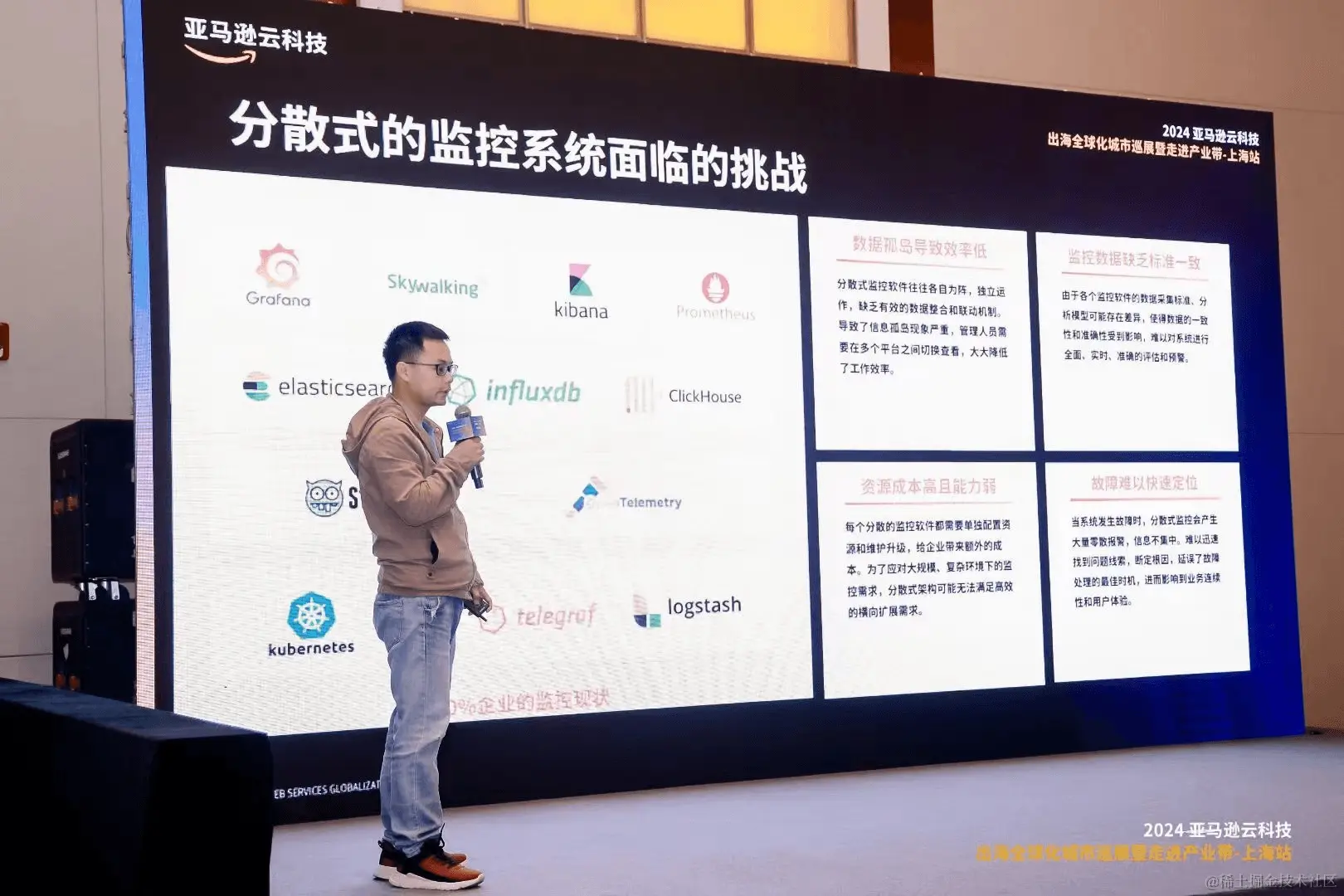 亚马逊云科技“构建全球化软件和互联网新生态——ISV 行业”论坛上,观测云产品架构师刘锐发表了题为“AI Agent 可观测性探索与实践”的主题演讲,不仅展示了观测云在人工智能领域的前沿技术,更强调了在日益复杂的系统环境中,实现有效监控的必要性。