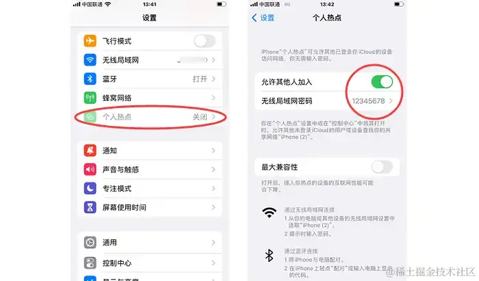 返回苹果手机**【设置】页面中,找到并点击【个人热点】选项。在个人热点设置页面中,找到【允许其他人加入】**开关,将其滑动到右侧以开启热点功能。开启后,你可以看到一个热点名称和密码,其他设备可以使用这些信息连接到你的热点网络。