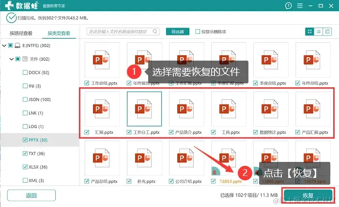 2)扫描完成后,可以选择需要查看的细分文件类型,并在右侧对需要恢复的文件进行勾选;
