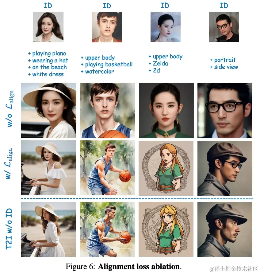 总的来说,PuLID巧妙地结合了两种训练分支,通过对比对齐和精确ID损失的方式,在保持高ID保真度的同时,最大程度减少了对原始模型的干扰。