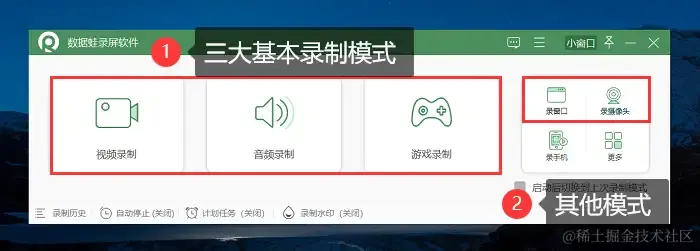 步骤2:双击打开下载好的软件,进入主界面,有多种录制模式供您选择,您可以根据您的需求和爱好自由选择。