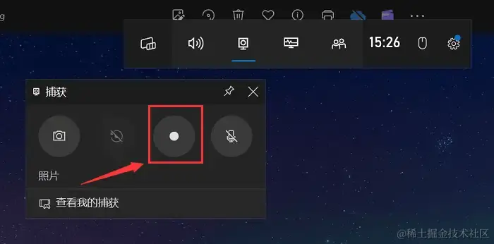 屏幕录制步骤:在键盘上按下 【Win+G】 ,点击录制按钮即可录制。但其不能录制桌面,录屏文件占内存空间比较大还不清晰。