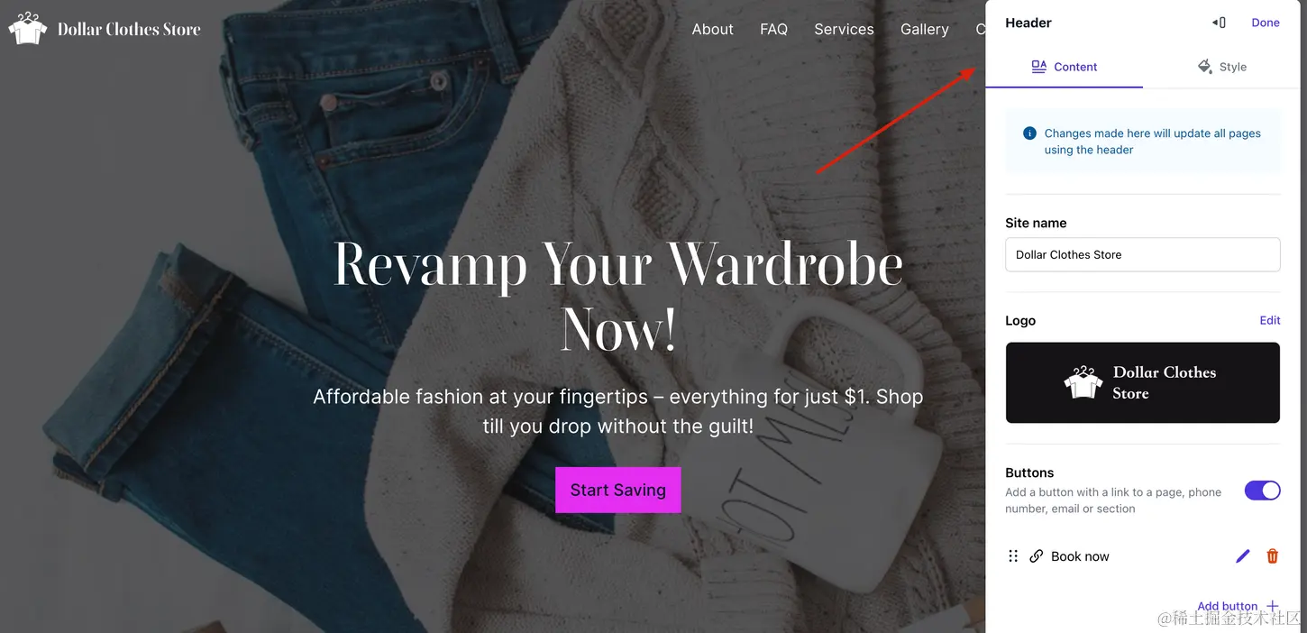 其次网站的基本信息也都是可以修改的,比如我一开始的名称是:one dollar clothes store,我觉得太长了,可以点击这里进行修改