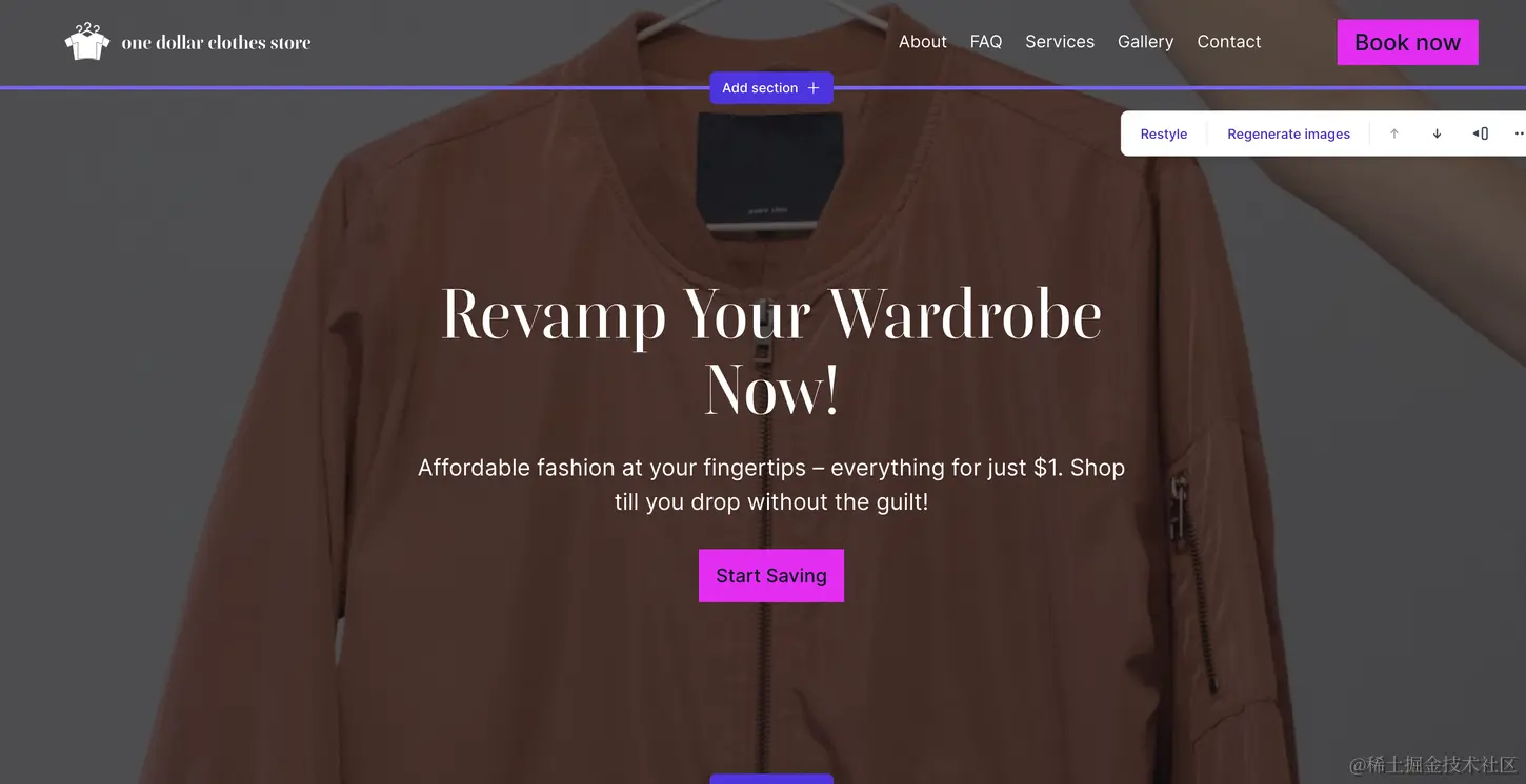 用户并不需要有编程建站的经验,也不需要有网站的设计经验,只需要输入你的网站类型,Durable就会利用AI自动给你生成一个网站模板。