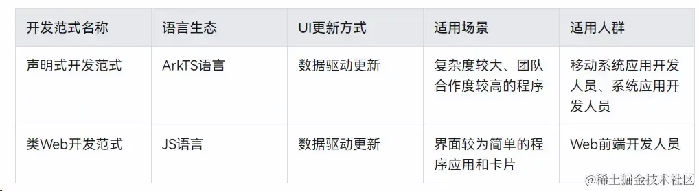 虽然ArkUI框架也就是方舟开发框架(HarmonyOS提供了一套UI开发框架)针对不同目的和技术背景的开发者提供了两种开发范式,基于ArkTS的声明式开发范式和类Web开发范式,但是仍然建议你第一选择,一定要选择声明式开发范式的ArkTs语言。
