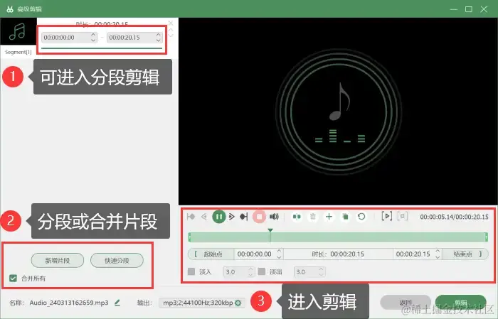 步骤4:完成录音之后,可以进入 【高级剪辑】 页面,对音频进行剪辑。