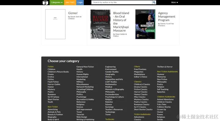 它的首页将不同类型的书籍进行详细分类,首页下方还能找到最近热门、流行的书籍,电子书的下载方式也很简单,点击查看书籍就可以看到免费下载按钮。