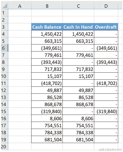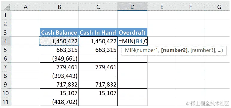 - 我们需要修改余额列中的公式,以便第一个引用的单元格为
