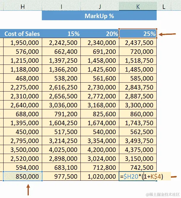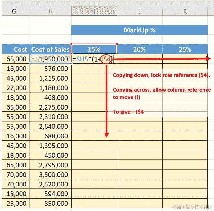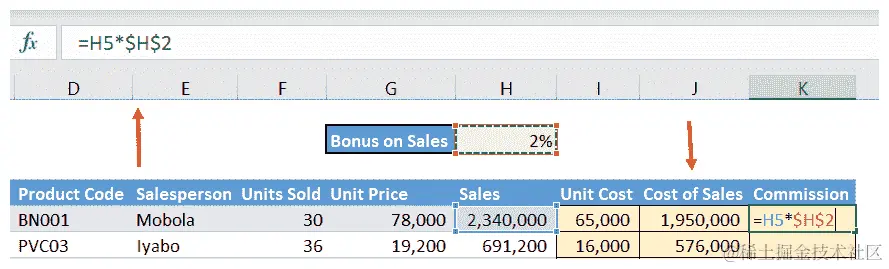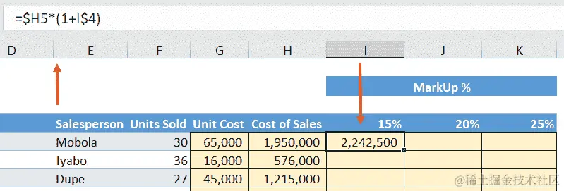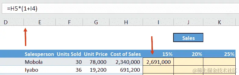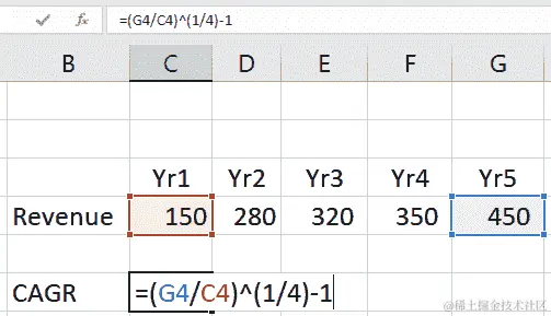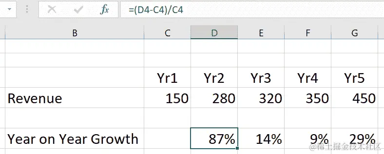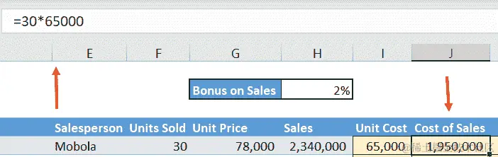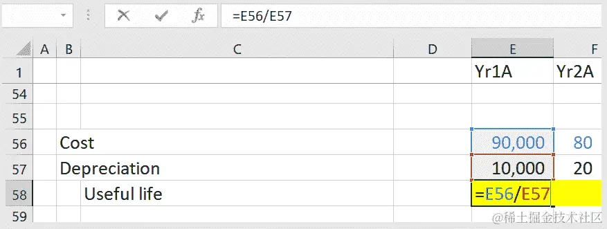 我们将用实际值替换这些变量——通过单元格引用的方式,以便我们的最终公式如下所示:
