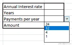 - 现在我们将在每年支付字段添加数据验证,这样我们就可以在四种支付选项之间选择——每半月、每月、每季度和每年。为此,我们首先将创建一个包含 4 个值的表—