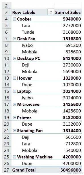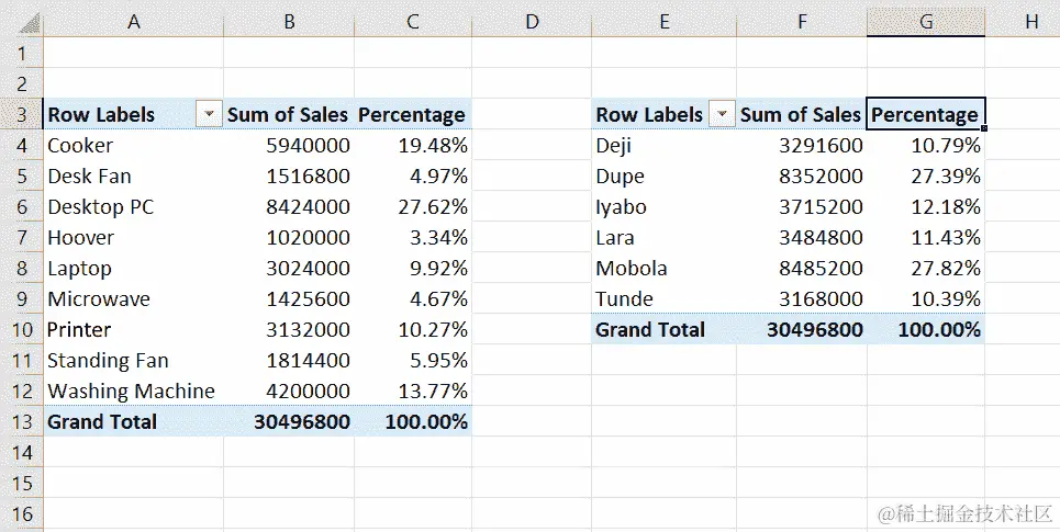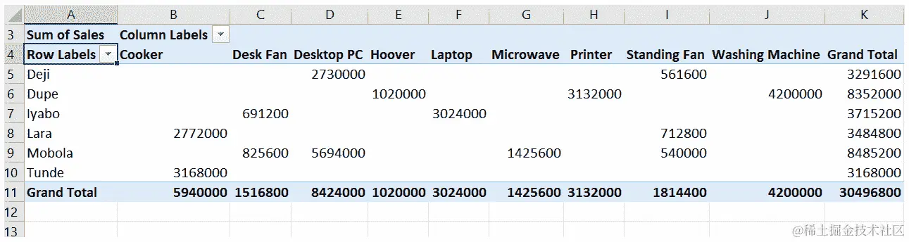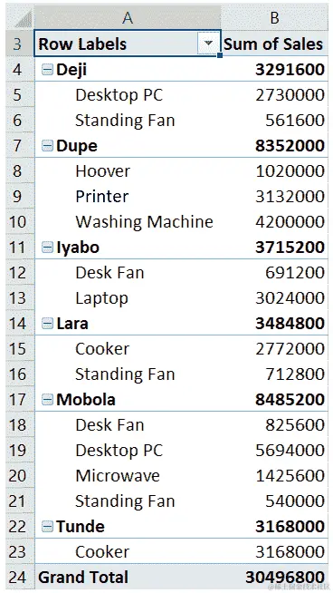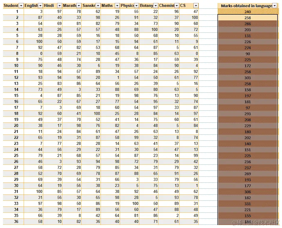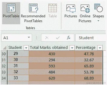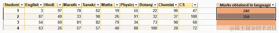 - 现在,我们将选择A8 - E8范围,并向下拖动填充手柄一行,以便填充第二列。这导致了以下输出: