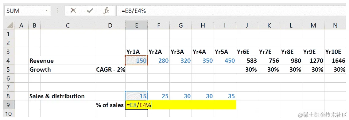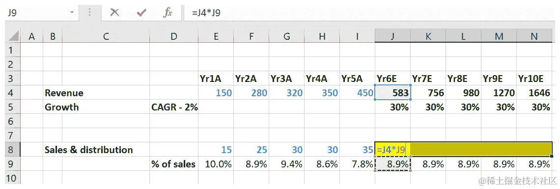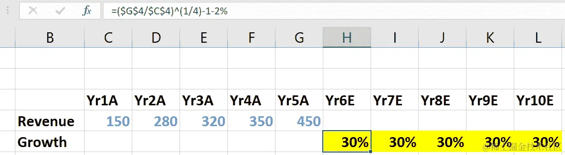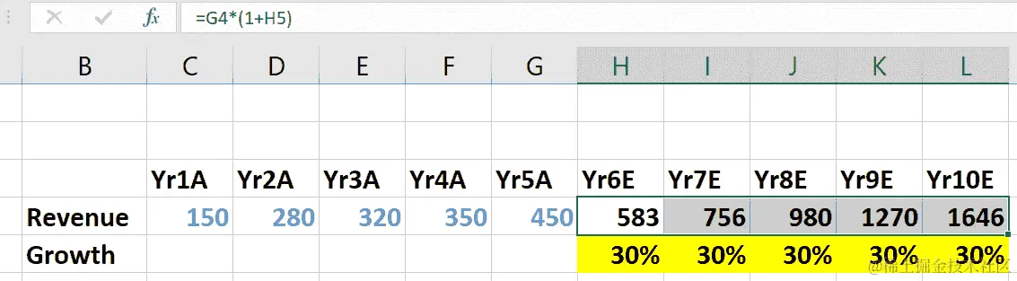 - 现在,将公式延伸到每个预测年度: