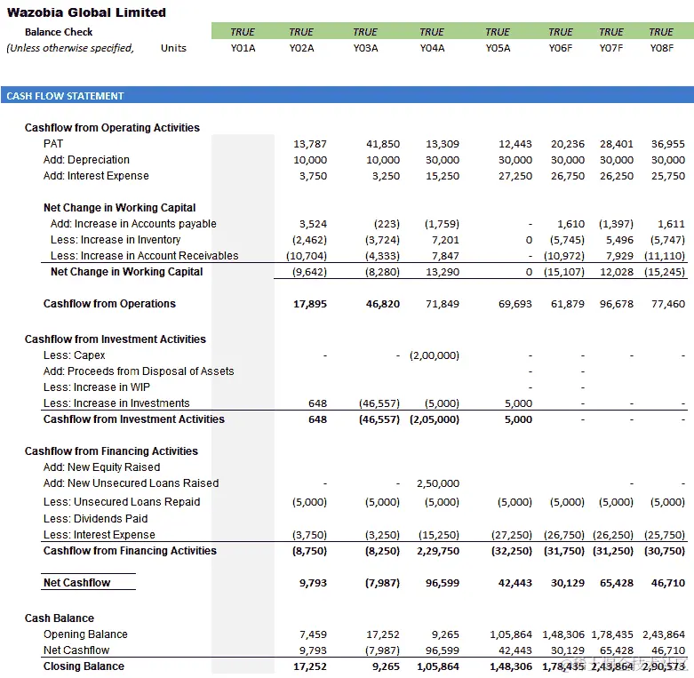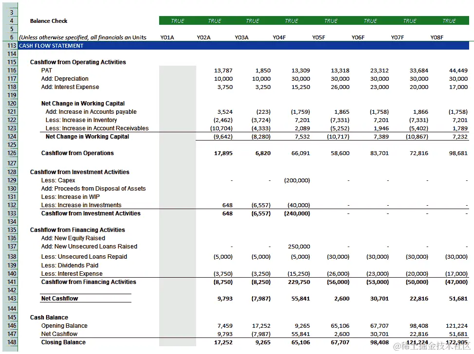 如果你的模型需要高精度,你将从已发布的历史账户和管理讨论中尽可能获取更多信息。你会关注获取额外融资和清偿现有贷款的计划,以及需要融资的固定资产增加。