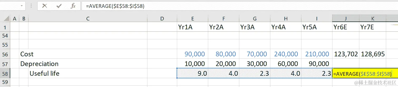 - 然后,计算过去五个历史年度的使用寿命值的平均值: