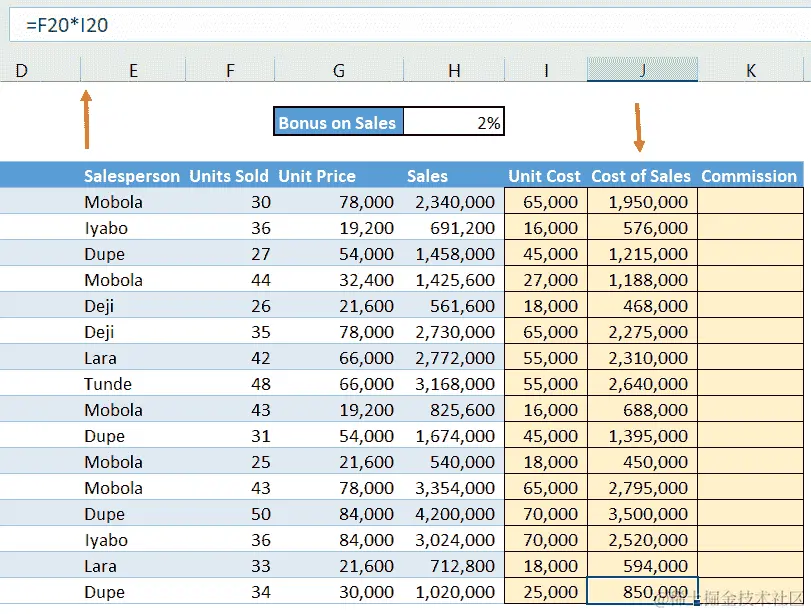 - 现在第一个公式已经就位,我们将使用