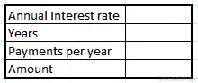 - 第一件事是为计算贷款创建一个模板。我们将通过首先创建一个两乘四的表格来输入贷款变量,如下所示: