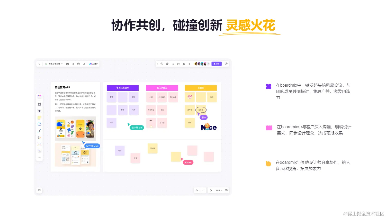 协作共创:支持一键发起头脑风暴会议,与团队成员共同探讨,激发创造力。