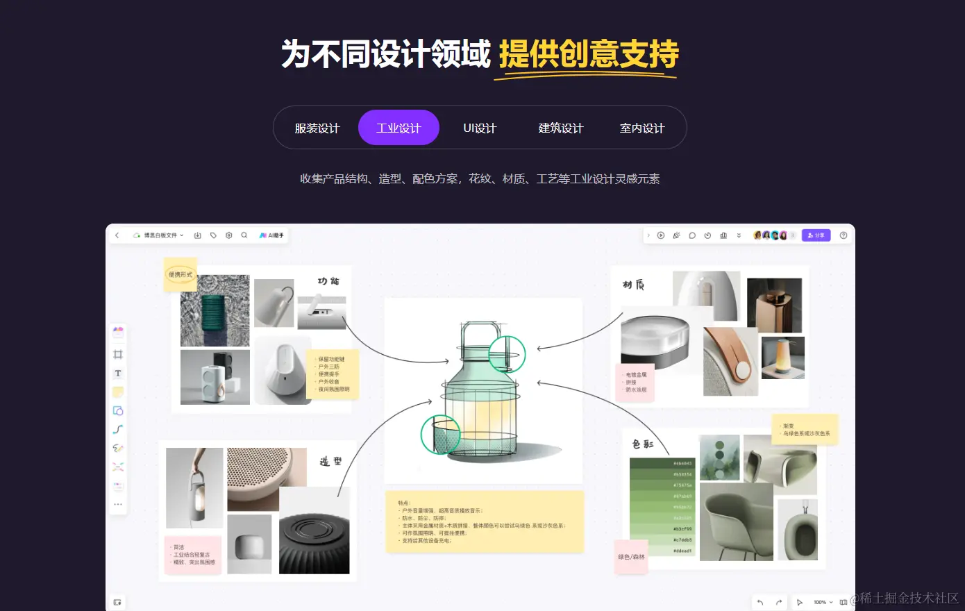 设计领域支持:为不同设计领域如服装设计、工业设计、UI 设计、建筑设计和室内设计提供创意支持。