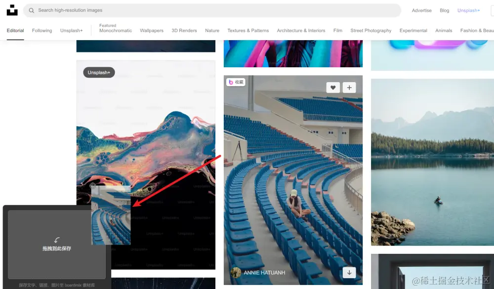 此外,当我们把鼠标指针悬浮在网页图片上方时,图片左上角会弹出一个「收藏」按钮,点击即可将图片剪藏保存到 boardmix 素材库。
