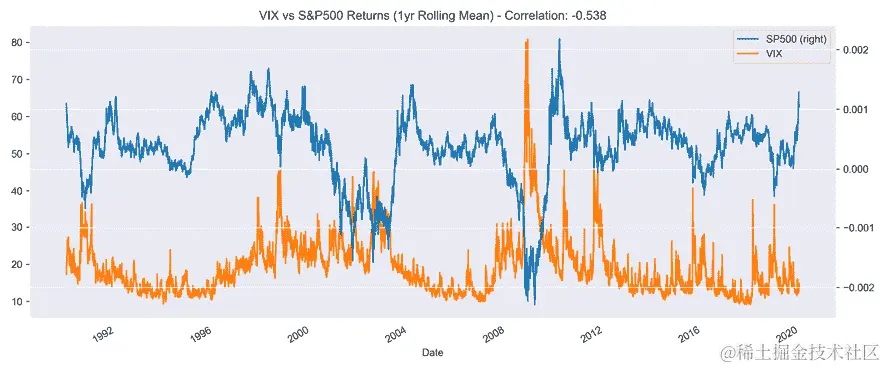 图 4.3:VIX 与标普 500 之间的相关性
