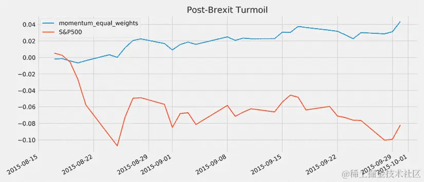 动量因子在 2008 年危机之前明显优于其他显著的风险因子。其他因素包括高减低(HML)价值因子,强劲减弱劲(RMW)盈利能力因子和保守减激进(CMA)投资因子。股票溢价是市场回报(例如,标准普尔 500 指数)与无风险利率之间的差异。