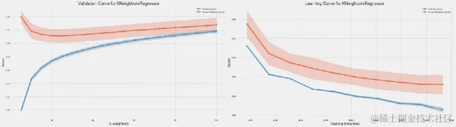 在我们的示例中,交叉验证性能持续下降,但增量改进已经减少,误差已经趋于稳定,因此增加训练集的好处不大。另一方面,与训练误差相比,数据显示了相当大的变化。