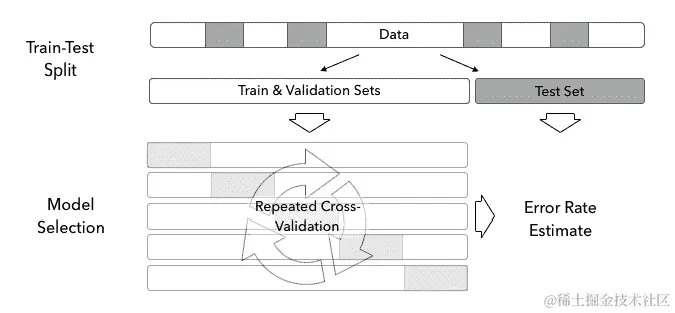 模型选择通常涉及超参数调整,这可能导致许多 CV 迭代。表现最佳模型的结果验证分数将受到多重检验偏差的影响,它反映了 CV 过程中固有的抽样噪声。因此,它不再是泛化误差的良好估计。为了得到无偏的误差率估计,我们必须从新的数据集中估计分数。
