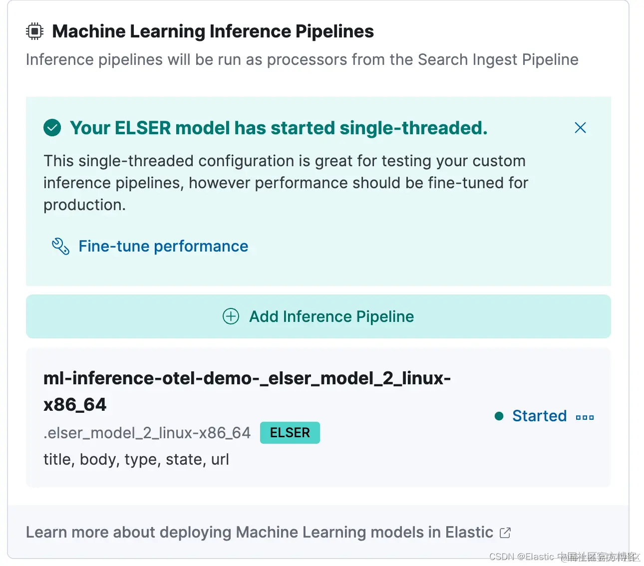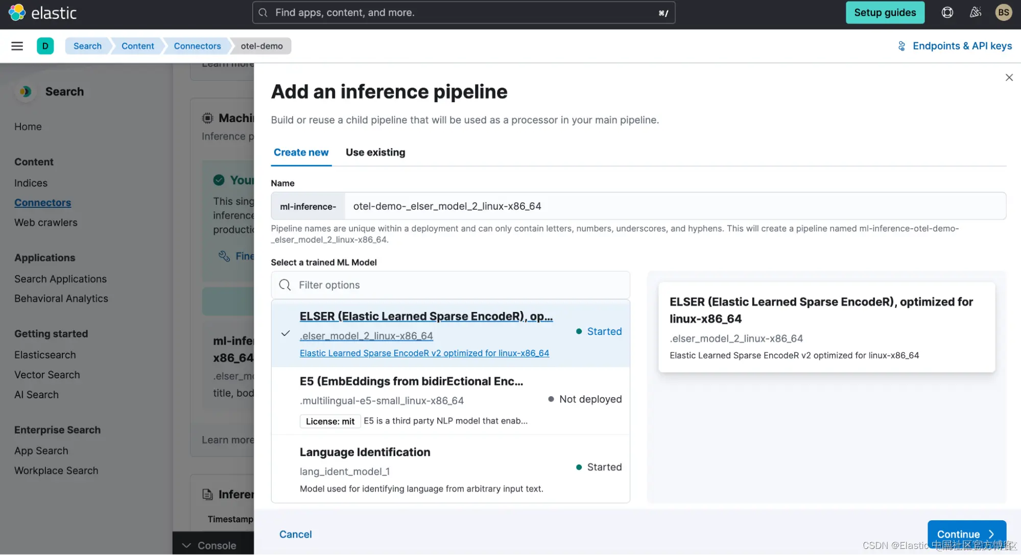 - 选择 ELSERv2 ML 模型以添加嵌入。