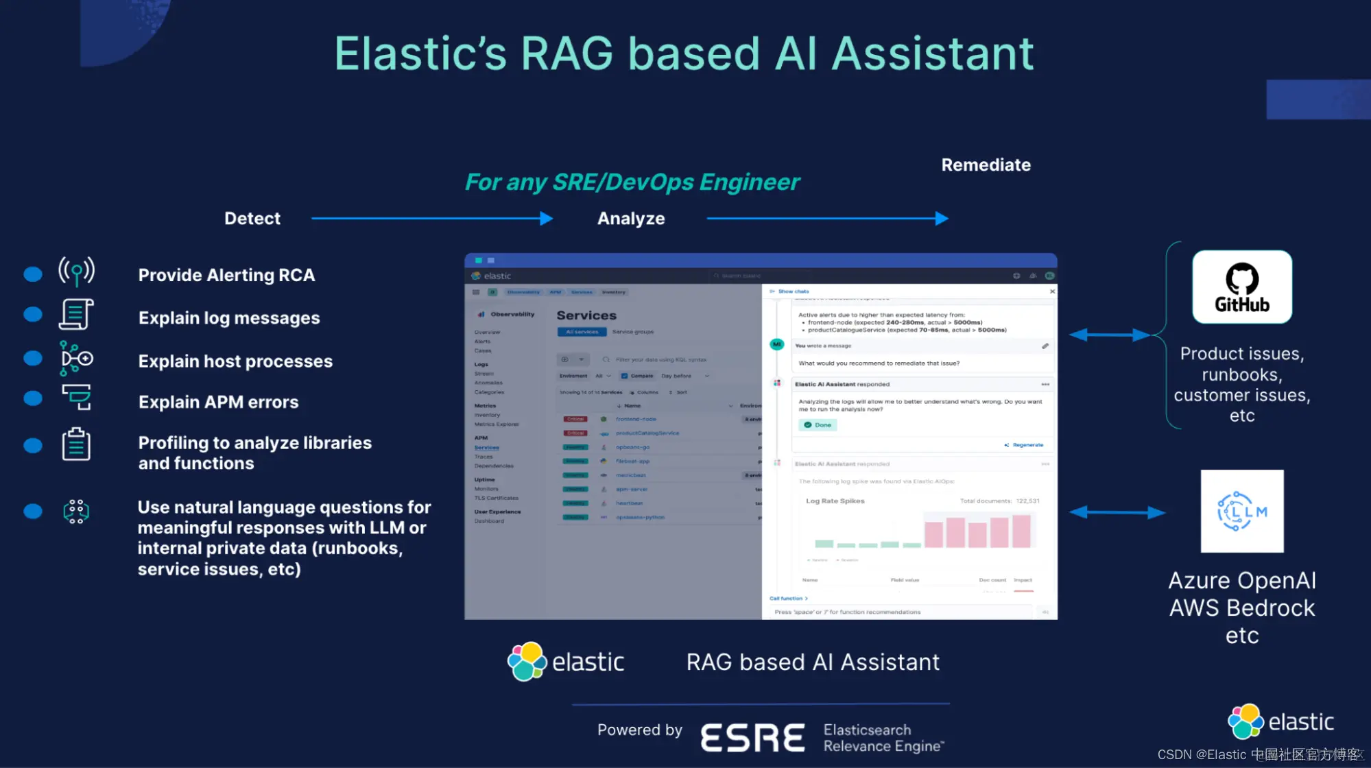 - Elastic 8.13:Elastic AI Assistant for Observability 中 Amazon Bedrock 的 GA
