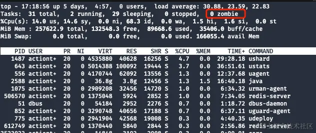 PID 31036不存在mysqld.pid文件存在,且文件内容为 31036top命令查看不存在僵尸进程