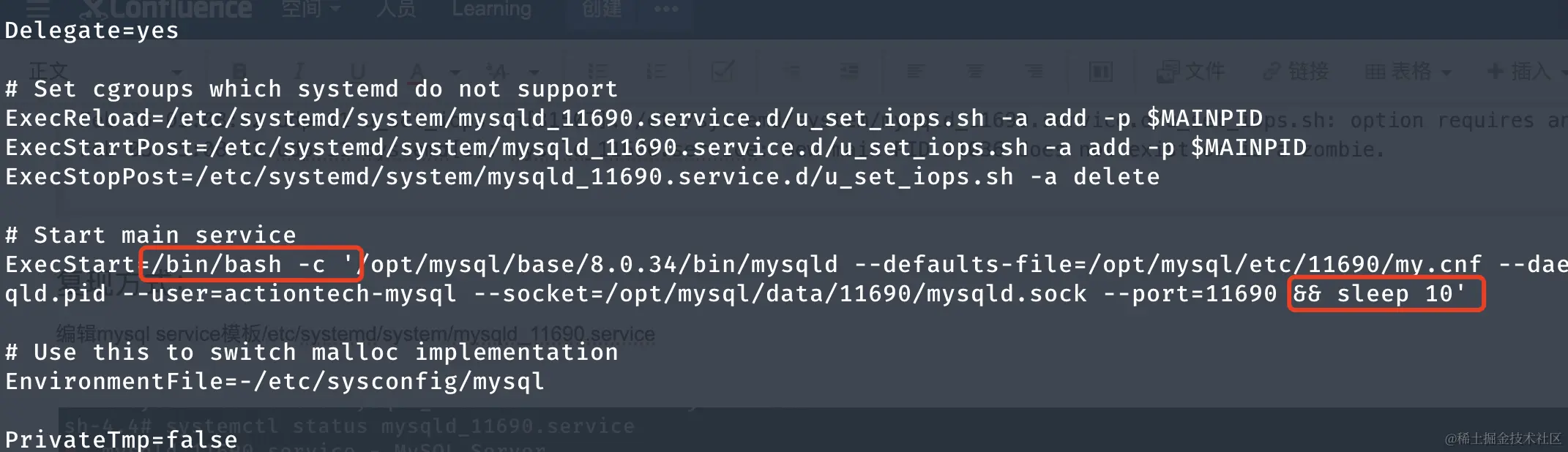编辑模板文件 /etc/systemd/system/mysqld_11690.service,在 mysqld 启动后,sleep10 秒,方便在这时间窗口内模拟kill掉实例进程的场景。